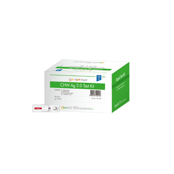Anigen Rapid Heartworm Ag Test Kit 2.0 je kromatografski imunotest za kvalitativno otkrivanje antigena Dirofilaria immitis u psećem serumu, plazmi ili punoj krvi. Anigen Rapid Heartworm Ag Test Kit 2.0 sadrži oznake ˝T˝ i ˝C˝, za testnu i kontrolnu liniju na površini testnog panela. Ni testna linija, kao ni kontrolna linija nisu vidljive na rezultatskom prozoru prije stavljanja ijednog uzorka. Kontrolna linija koristi se za proceduralnu kontrolu i uvijek bi se trebala pojaviti ako se testni postupak ispravno izvodi te ako testni reagensi kontrolne linije funkcioniraju. Ljubičasta testna linija pojavit će se na rezultatskom prozoru ako uzorak sadrži dovoljnu količinu antigena Dirofilaria immitis. Posebno birana pseća antitijela na Dirofilaria immitis koriste se u testu i kao hvatački i kao detektorski materijal, koji omogućavaju Anigen Rapid Heartworm Ag 2.0 testnom kompletu za pse da prepozna antigen Dirofilaria immitis u psećem serumu, plazmi ili punoj krvi s visokom razinom točnosti.