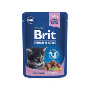 Komadići s bijelom ribom u umaku za mačiće. Potpuna premium mokra hrana za mačiće.