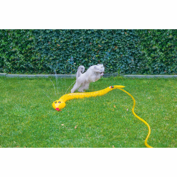 Ova zabavna zmija, izrađena od PVC-a, može se spojiti na vrtnu crijevo pomoću priloženog nastavka. Kada polako napunite crijevo vodom, a zatim dodatno otvorite slavinu, stvorit će se prava vodena fontana. Crijevo je prepuno malih rupica kroz koje voda šprica van.