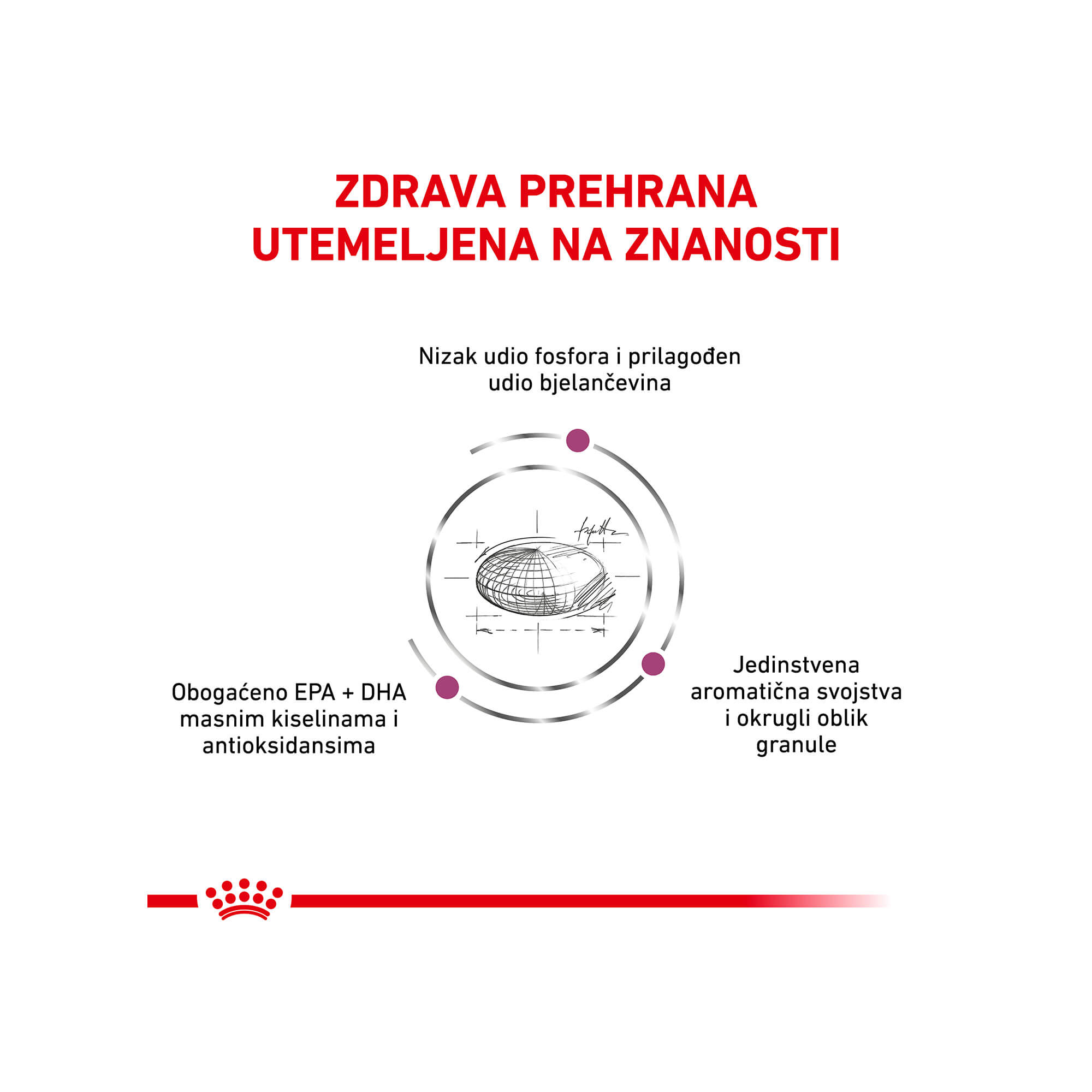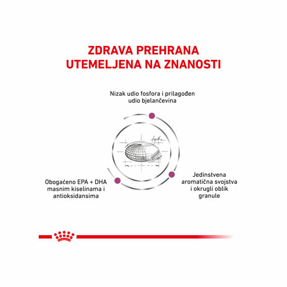 Royal Canin® suha hrana je potpuna dijetetska hrana za mačke formulirana za potporu rada bubrega u slučaju kronične bubrežne insuficijencije, sadrži nisku razinu fosfora te ograničenu razinu bjelančevina koje su visoke kvalitete.